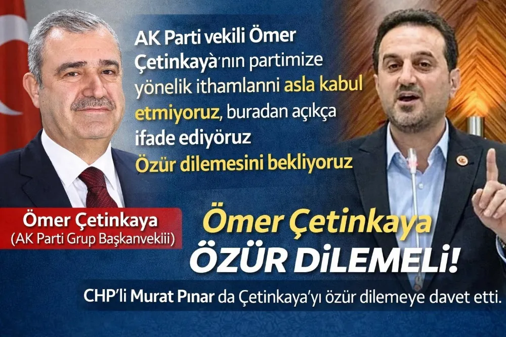 CHP Meclis Üyesi Murat Pınar da gündem dışı konuşmasında söz alarak, Ömer Çetinkaya’nın CHP’ye yönelik ifadelerini sert bir dille eleştirdi. Pınar, Çetinkaya’nın sözleri nedeniyle Cumhuriyet Halk Partisi’nden özür dilemesi gerektiğini bir kez daha yineledi.