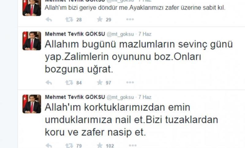 Esenler belediye baskani Mehmet Teyfik Göksu seçim günü twitter hesabinda yaptigi paylasimlarla dikkat çekti. Göksu’nun yaptigi paylasimlarini twitter kullanicilari tarafinda alaya alinarak Göksu’nun duasi tuttu mazlumlar kurtuldu diye paylasimlarda bulunuldu.