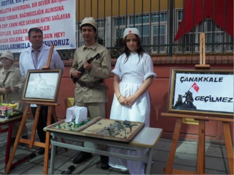 Esenler Hasip Dinçsoy IÖO ögretmenleri ve ögrencileri Dörtyol Meydanda Çanakkale Savaslarinin ruhunu ve özünü anlatan “Siir, Resim ve Kompozisyon” sergisi açtilar.