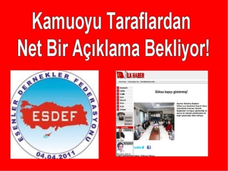 ESDEF’in FACEBOOK sayfasinda paylastigi kamuoyuna duyuru baslik paylasimina dernek yöneticileri ve Esenler kamuoyundan yorum almasi dikkatlerden kaçmadi.bunun üzerine kamuoyu taraflardan net bir açiklama bekleyisi içerisine girdi.