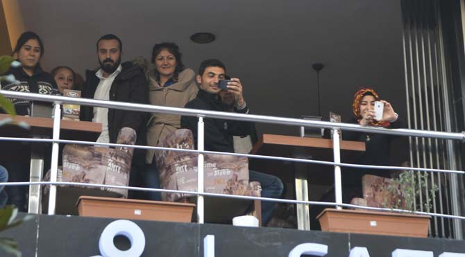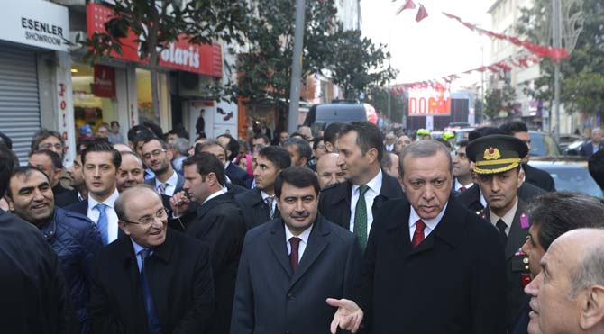 Istanbul Esenler’de toplu açilis törenine katilan Cumhurbaskani Tayyip Erdogan, Esenler’de AKP’li heyet ve korumalariyla yürüyüs yaptigi sirada kafelerden birinde sigara içenlere rastladi.