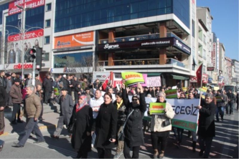 Bölgesine sokan karar ve uygulamalara karsi burada toplanmis bulunuyoruz.